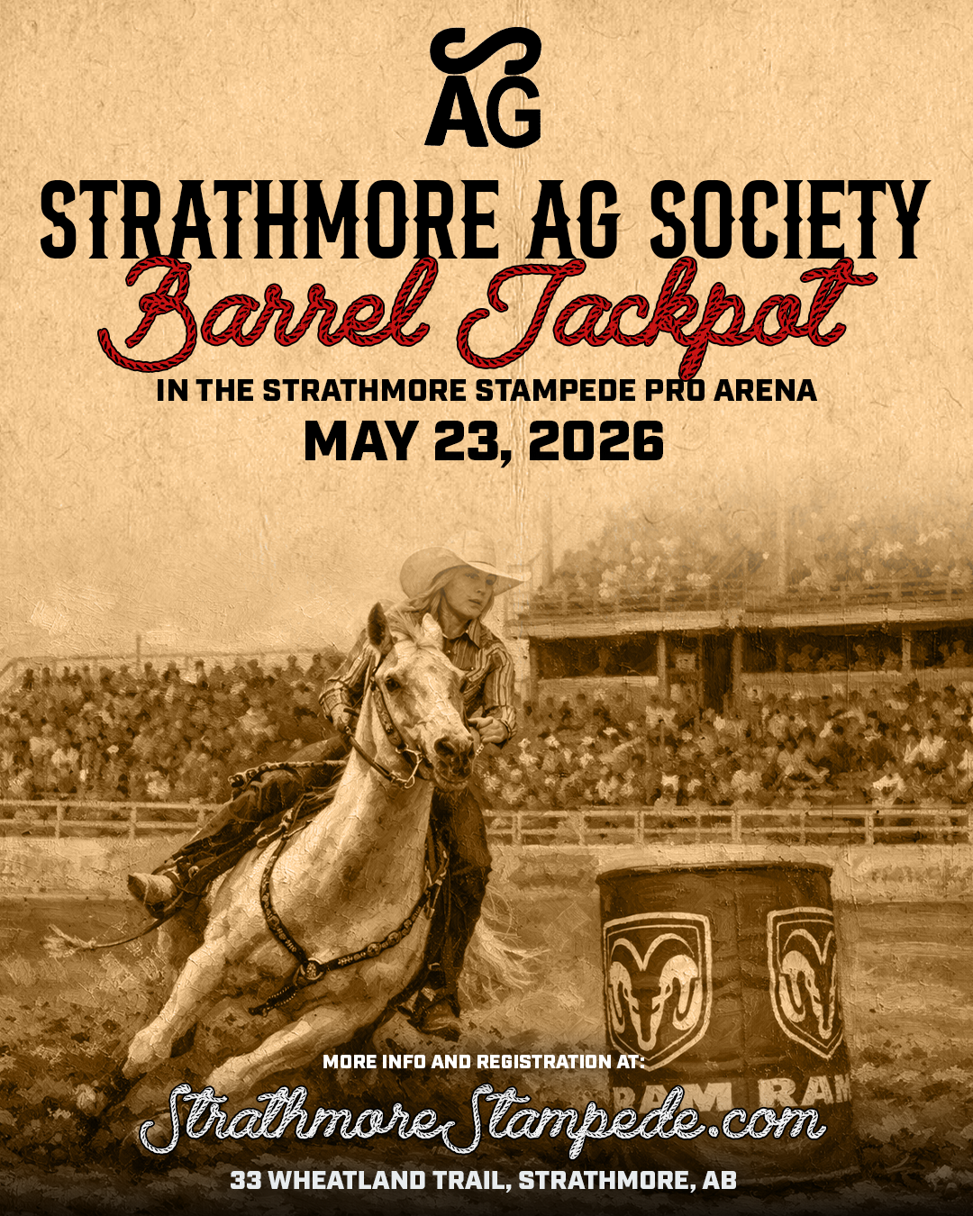 Join us for the Strathmore Ag Society Barrel Jackpot at the Strathmore Stampede Grounds pro rodeo arena.